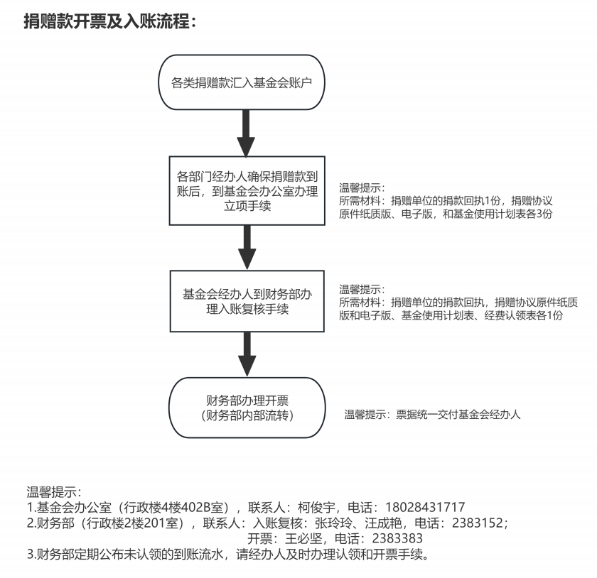 开具发票基本信息:单位名称:广东省广东海洋大学教育发展基金会纳税人识别号:53440000MJK8521534 (即统一社会信用代码)地址:广东省湛江市麻章区海大路1号电话:0759-2383383开户行:中国银行股份有限公司湛江霞山支行