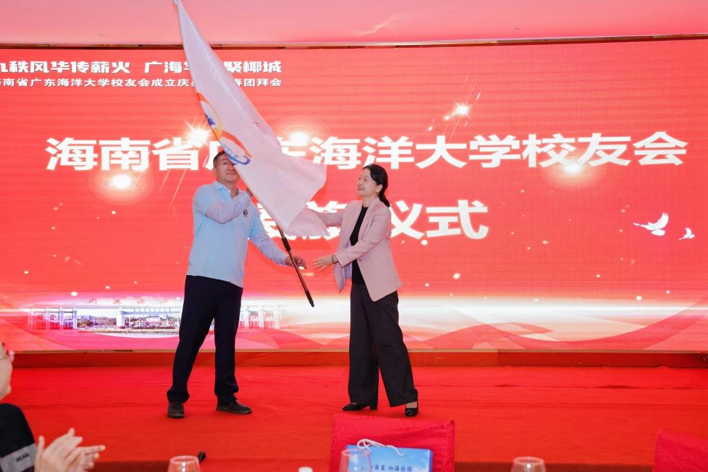 会上,谭平向海南校友分会授予会旗和传递校庆旗帜,林宇宣读了关于同意成立海南校友会申请的批复,并举行了理事聘任仪式。在校友见证下,老师、校友一同切下祝福蛋糕,为校友会成立开启了新篇章。
