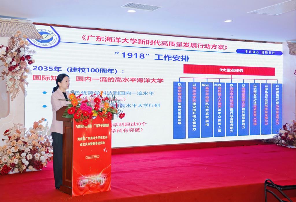 新当选海南校友会会长王平在任职发言中表达了对母校的眷恋与感恩之心,表示将团结广大校友,传承和弘扬广东海洋大学的优良传统和精神,努力把海南校友会打造成一个温馨的校友之家,整合凝聚各方资源,助力母校高质量发展,为喜迎母校90周年校庆贡献力量。